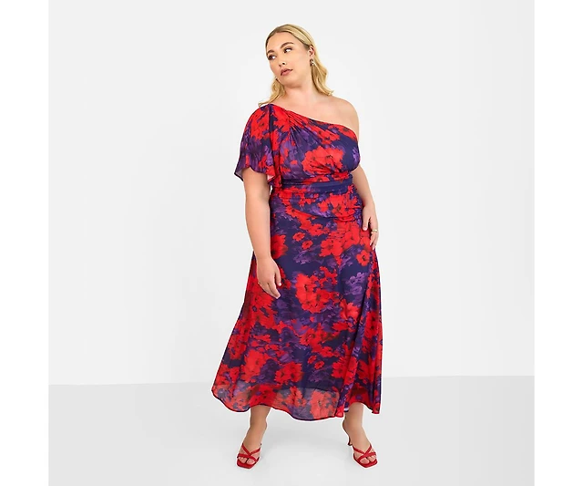 Rebdolls Women's Aurora Floral One Shoulder Maxi A Line Dress
