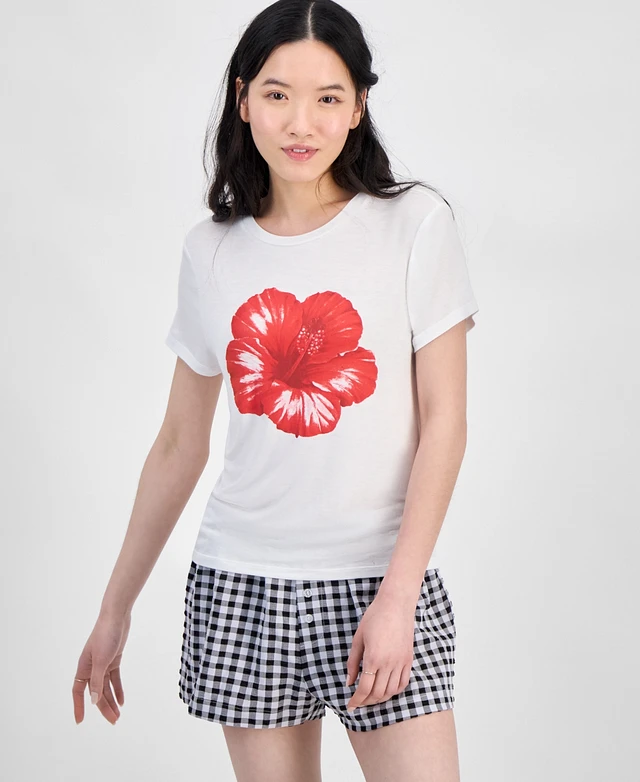 Rebellious One Juniors' Hibiscus Graphic T-Shirt
