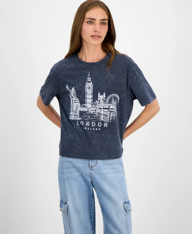 Rebellious One Juniors' London Mineral Wash Graphic T-Shirt