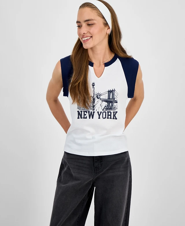 Rebellious One Juniors' Nyc Raglan-Sleeve Graphic T-Shirt