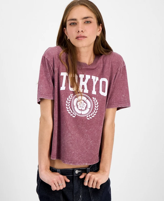 Rebellious One Juniors' Tokyo Mineral Wash Graphic T-Shirt