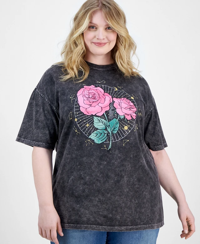 Rebellious One Trendy Plus Rose Graphic Cotton T-Shirt