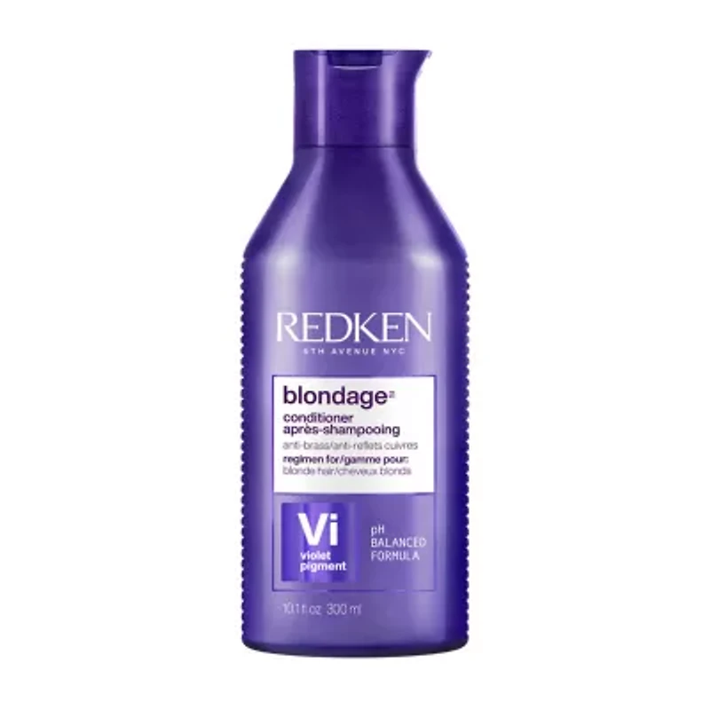 Redken Color Extend Blondage Conditioner is a color-depositing and protecting purple conditioner and hair toner for blonde and highlighted hair. This conditioner features citric acid to strengthen and repair blonde hair from the core and pure violet (purple) pigments to remove unwanted brassiness to leave your blonde hair color cool and bright. This formula gently detangles, strengthens, and moisturizes in one step.