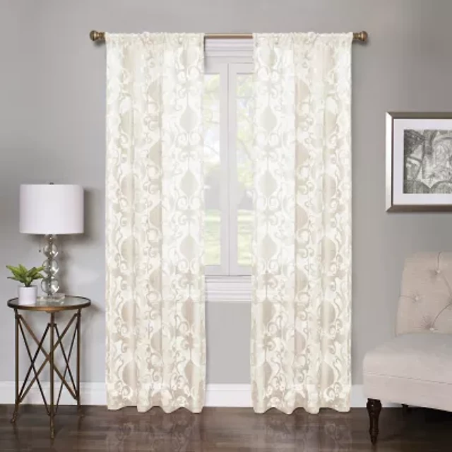 Regal Home Lombardi Floral Rod Pocket Sheer Single Curtain Panel