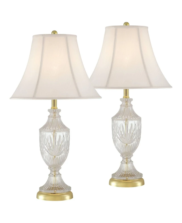 Regency Hill Traditional Table Lamps 26.5" High Set of 2 Cut Glass Urn Brass White Cream Bell Shade for Living Room Family Bedroom Bedside