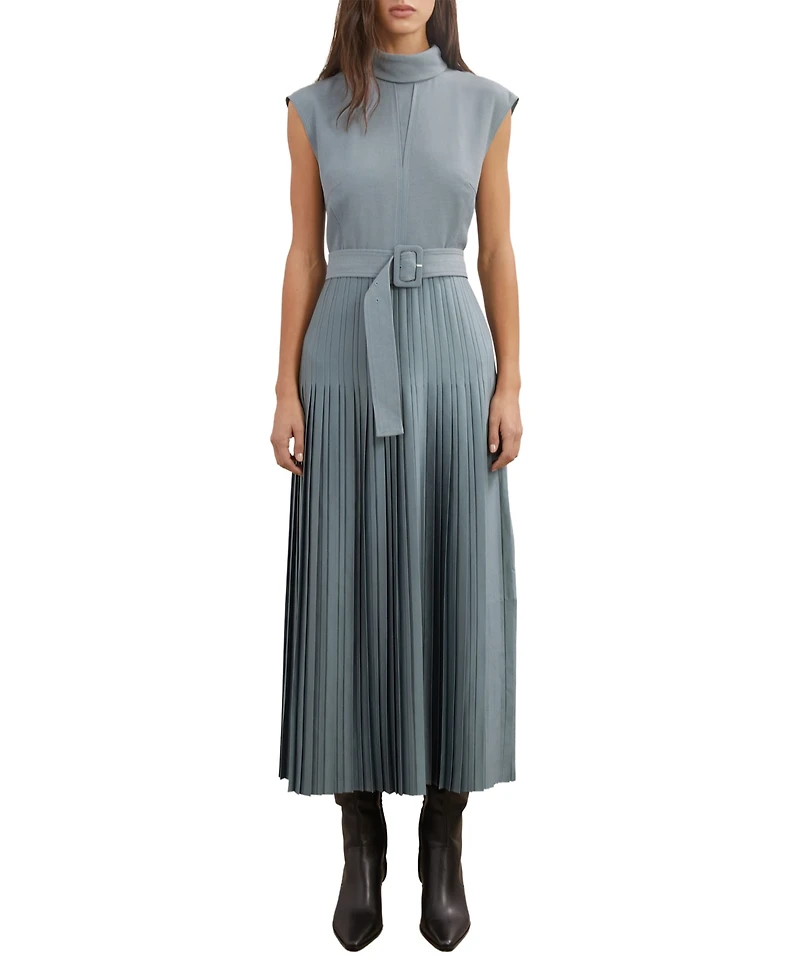 Reiss Women's Roll-Neck Belted Pleated Midi Dress