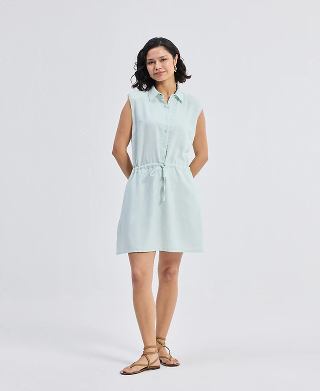 Reistor Women's Drawstring Denim Shirt Dress with Front Buttons Blue