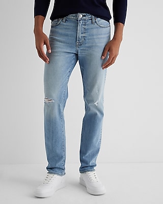 Slim Light Wash Ripped Hyper Stretch Jeans