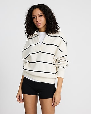 Relaxed Striped V-Neck Fleece Polo Sweatshirt