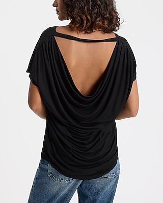 Relaxed Mock Neck Long Sleeve Cutout Shoulder Tee