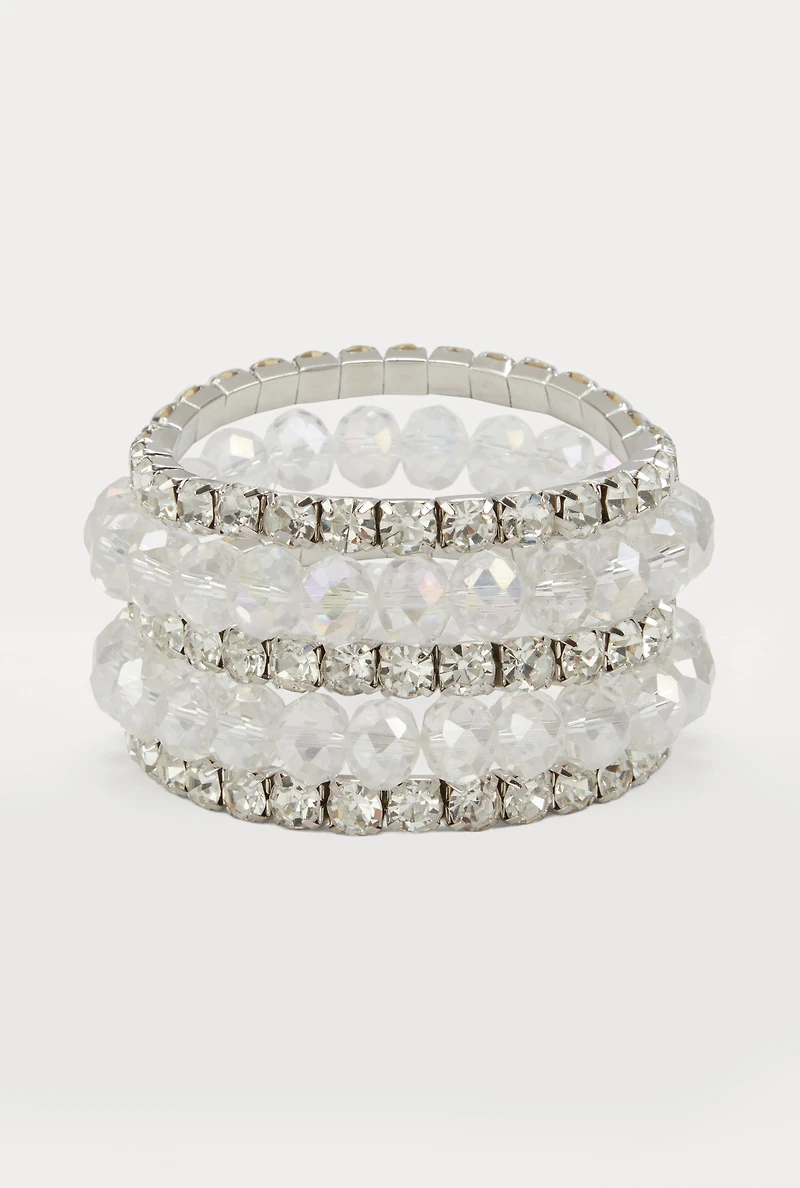 Rhinestone Beaded Stretch Bracelets Set of 5