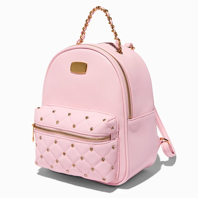Rhinestone-Studded Blush Pink Quilted Small Backpack