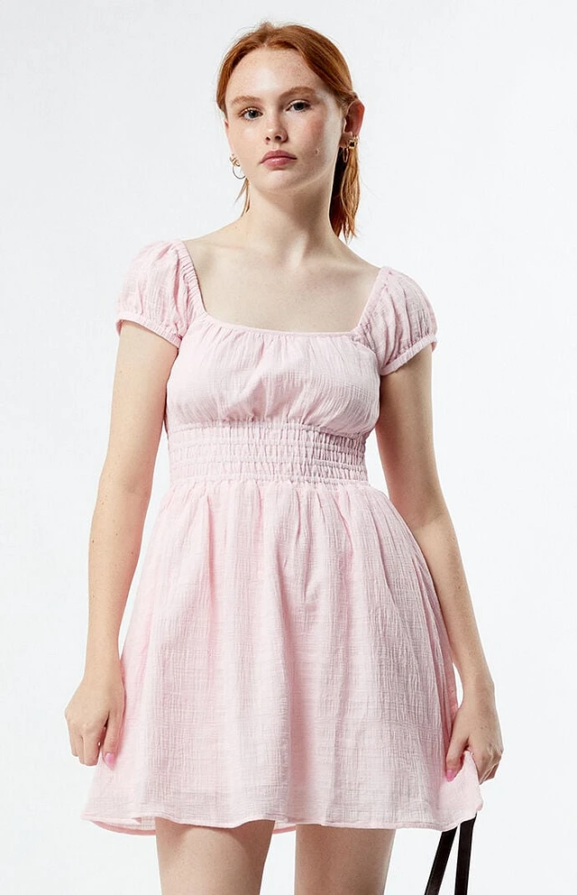 Edikted Drop Waist Smocked Mini Dress