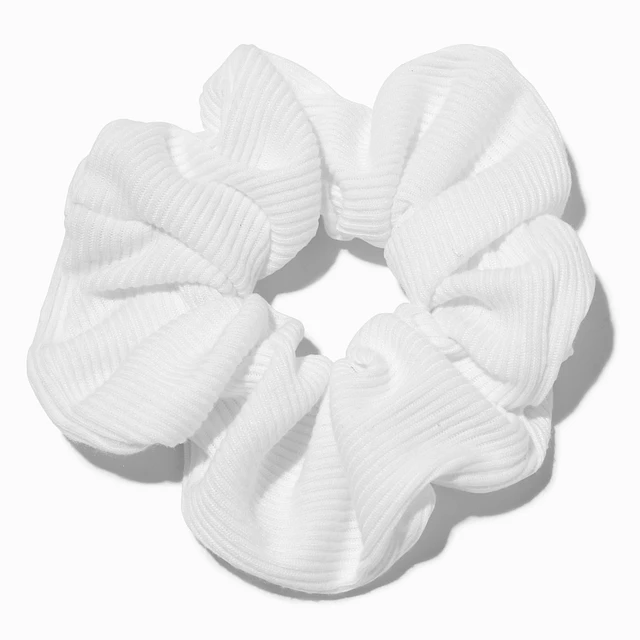 Ribbed White Hair Scrunchie