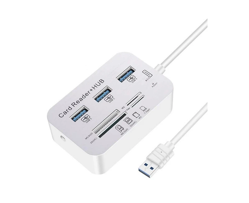 This 7-in-1 Usb 3.0 Hub with Multi-Card Reader is a practical and high-performance adapter designed to expand your laptop or desktop s connectivity, combining 3 Usb 3.0 ports with support for Ms, Sd, M2 and Tf memory cards to eliminate the need for separate adapters and card readers. With Usb 3.0 speeds up to 5Gbps—10x faster than Usb 2.0—it lets you transfer Hd movies, photos and large files in seconds, making it ideal for photographers, content creators and office workers who need to move data quickly. Its driver-free plug-and-play functionality works seamlessly with Windows Xp/Vista/7/8/10 and Mac Os 9.1+. The hub reads one memory card at a time to ensure stable data transfer, and its compact, portable design fits easily in laptop bags or pockets, making it perfect for travel and remote work.