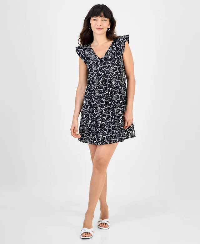 Robbie Bee Petite Embroidered Flutter-Sleeve Cotton Dress