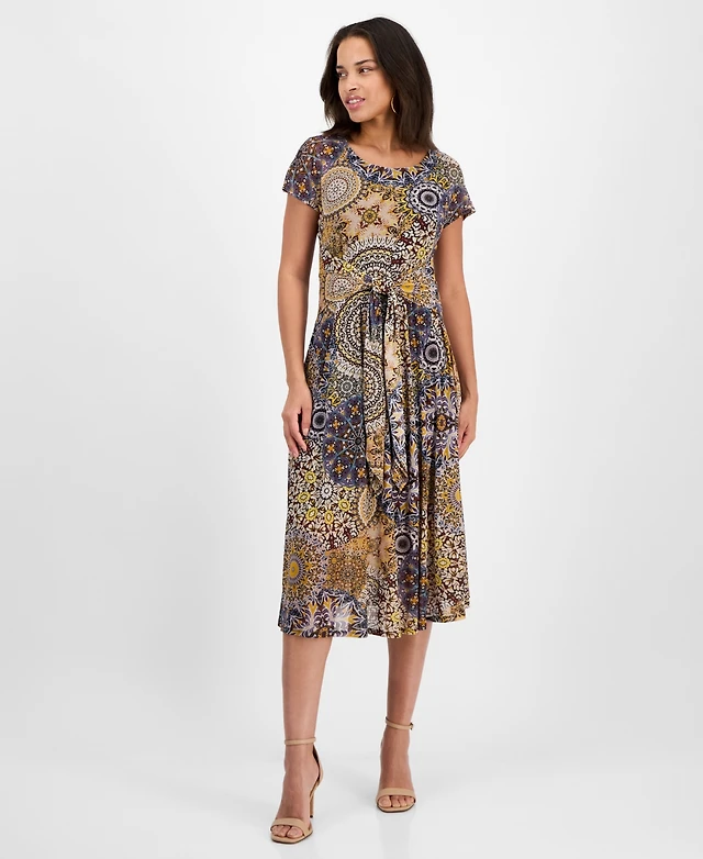 Robbie Bee Petite Printed Tie-Waist Midi Dress