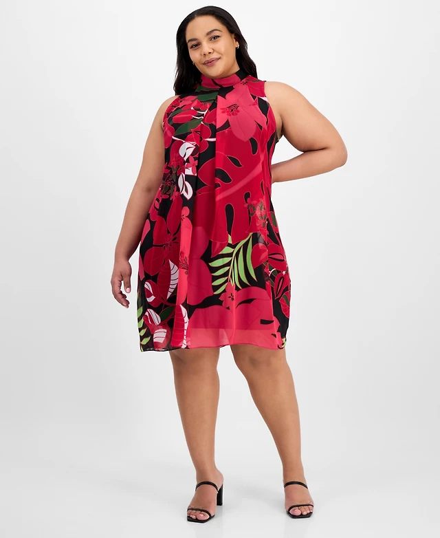 Robbie Bee Plus Size Bow-Back Printed Trapeze Dress