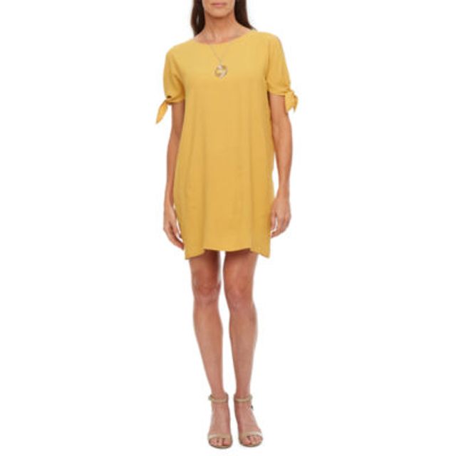 Robbie Bee Short Tie Sleeve Shift Dress With Necklace
