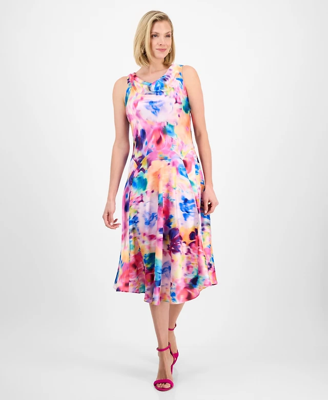 Robbie Bee Women's Floral-Print Cowlneck Fit & Flare Midi Dress