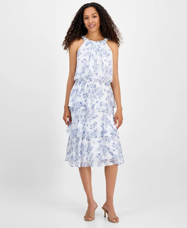 Robbie Bee Women's Tiered Floral Chiffon Fit & Flare Dress