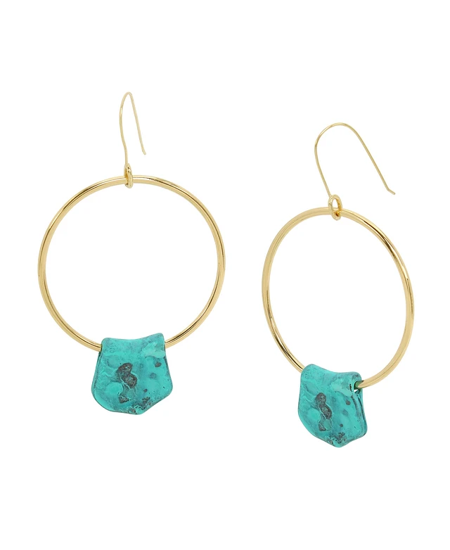 Robert Lee Morris Soho Turquoise Patina Petal Charm Hoop Earrings