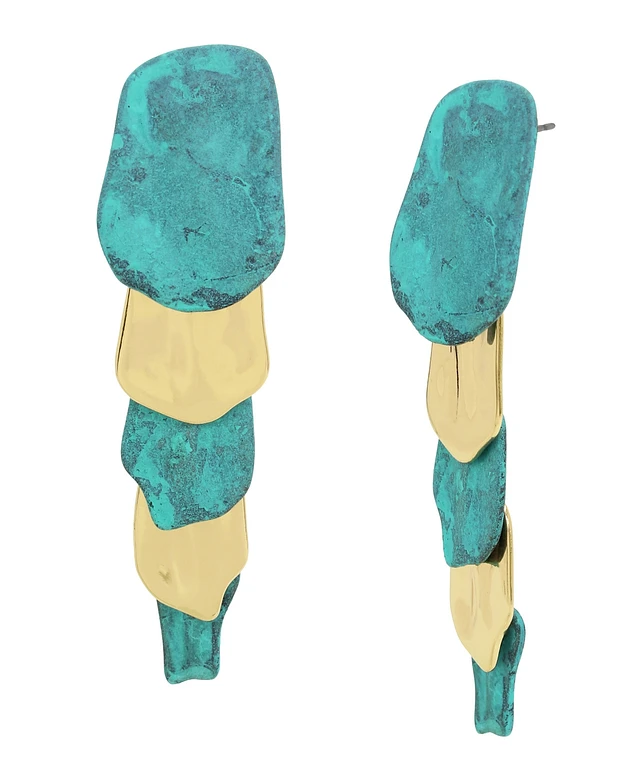 Robert Lee Morris Soho Turquoise Patina Petal Layered Linear Earrings