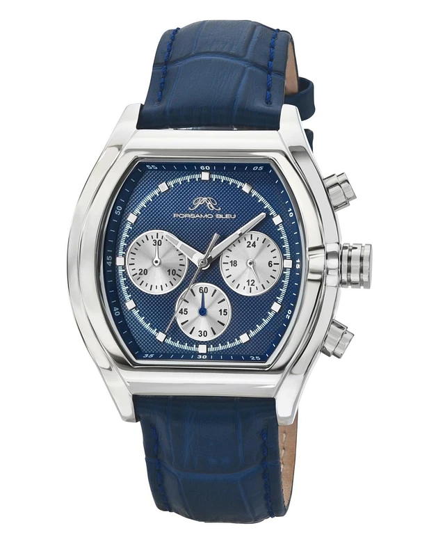 Porsamo Bleu Nyc Chrono Genuine Leather Silver Tone & Black Men's Watch 1281ANYL