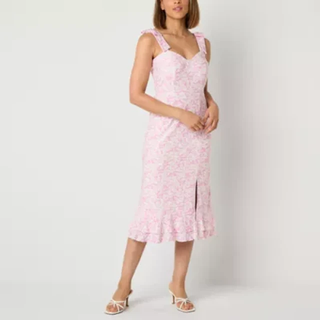 Ronni Nicole Womens Petite Sleeveless Floral Midi Fit + Flare Dress
