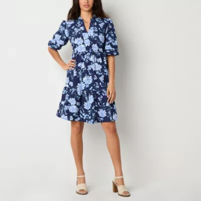 Ronni Nicole Womens Short Sleeve Floral Babydoll Dress Petite