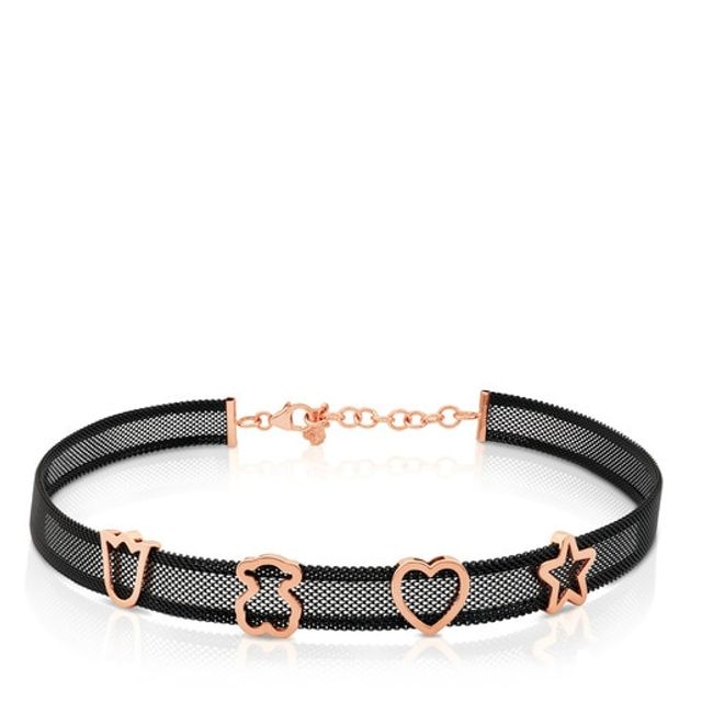 Black IP Steel and Rose Vermeil Silver TOUS Icon Mesh Ring
