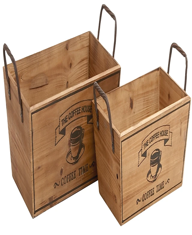 Rosemary Lane Wood Coffee Time Tray with Metal Handles, Set of 2, 18", 16" W
