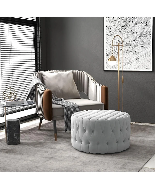 Velvet Upholstered Round Ottoman, Soft Footrest Stool, Elegant Accent for Living Room & Bedroom-The Pop Home