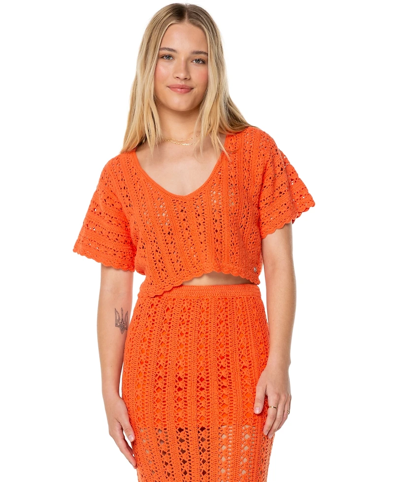 Roxy Juniors' Sea Swirl Crochet Cotton Top
