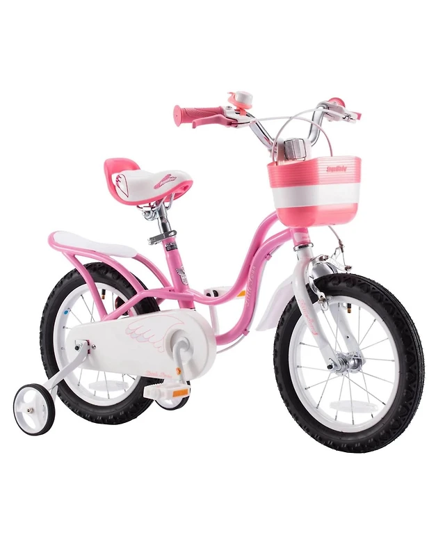 RoyalBaby Little Swan 14" Carbon Steel Kids Bike w/Dual Hand Brakes, Adjustable Seat, Folding Basket, & Training Wheels, for Girls Ages 3 to 5, Pink