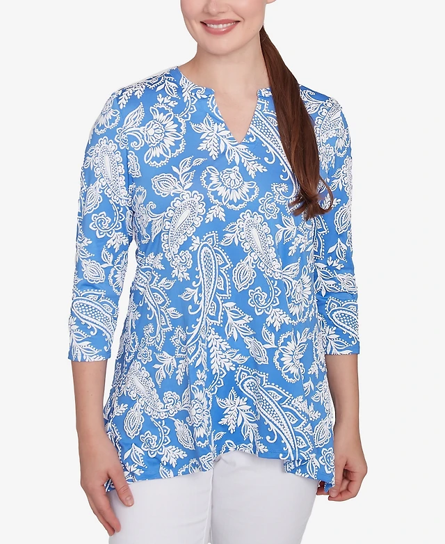 Ruby Rd. Petite Jacobean Paisley Puff Print V-Neck Top