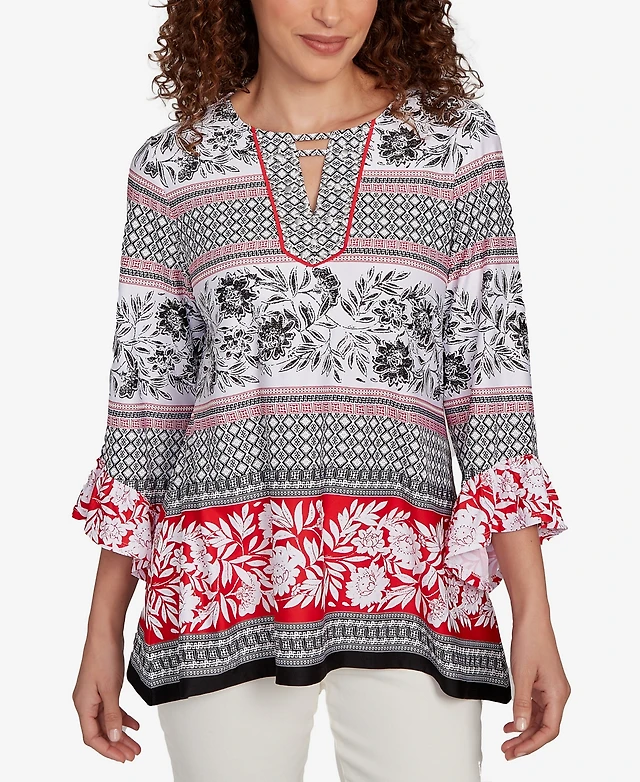 Ruby Rd. Petite Monotone Palms Puff Print Side Tie Top
