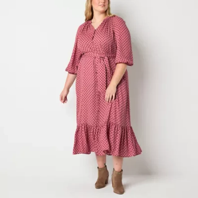 Ryegrass Womens 3/4 Sleeve Dots Midi Maxi Dress Plus
