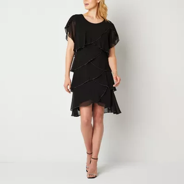 S. L. Fashions Womens Short Sleeve Midi Sheath Dress