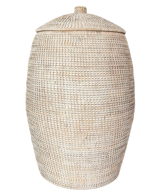 Seville Classics Hand-Woven Natural Wicker Lidded Double Laundry Hamper