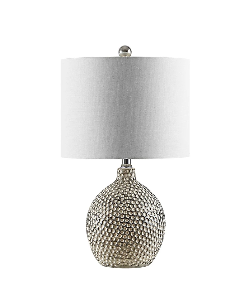 Give your decor a modern-retro touch with this Breeda table lamp. Styled after pop art from the 50's and 60's, Breeda's neutral tones, subtle distressing, and white drum shade soften the look while its iconic dotted pattern makes it a striking statement piece in any eclectic interior.