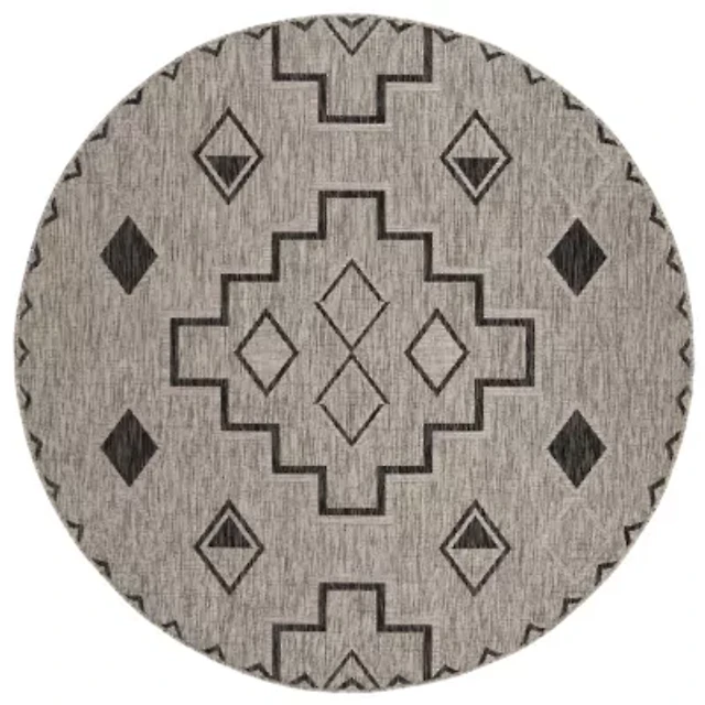 Safavieh Courtyard Collection Ambrose Geometric Indoor/Outdoor Round Area Rug