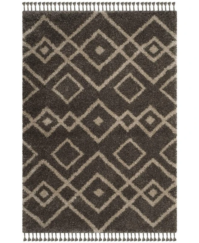 Safavieh Moroccan Fringe Shag MFG249 Gray and Cream 5'1" X 7'6" Area Rug