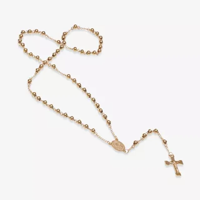 Mens Stainless Steel 36” Cross Rosary Necklace