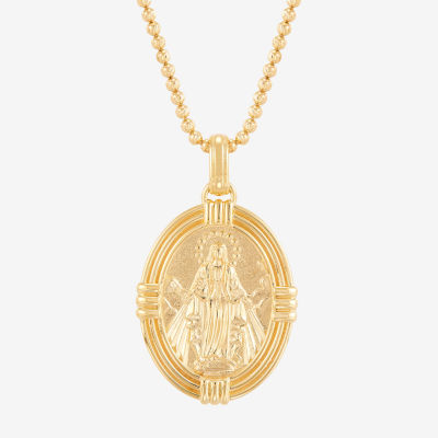 Mens 14K Gold Over Silver Oval 22 Inch Pendant Necklace