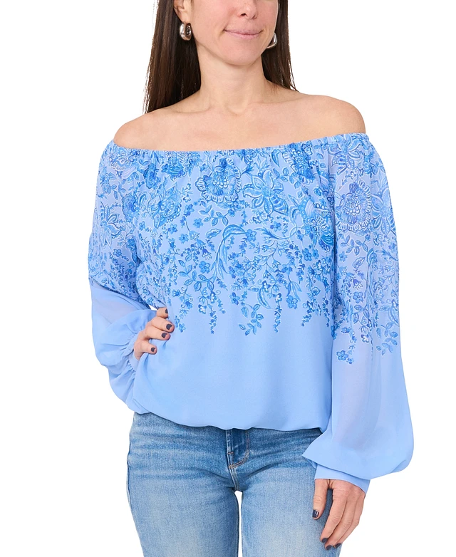 Sam & Jess Petite Off-The-Shoulder Floral Waterfall Top