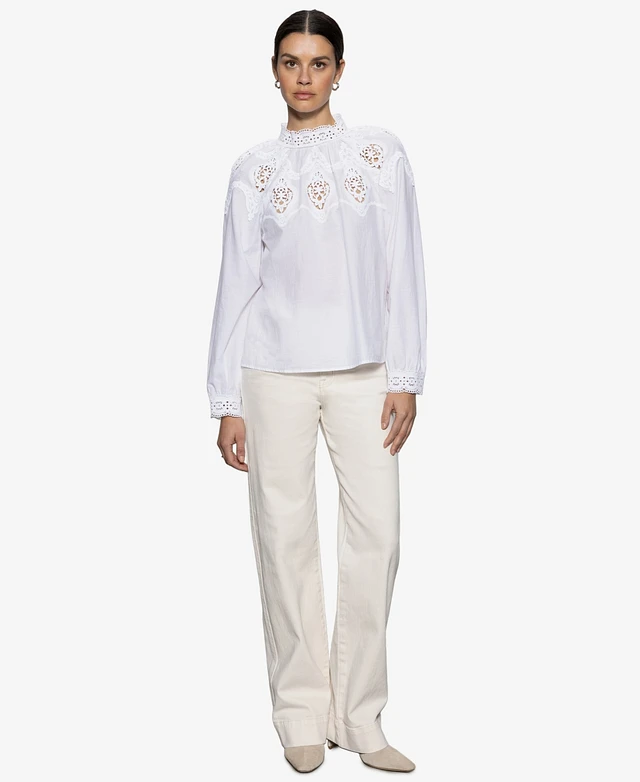 Sanctuary Women's Cotton Lace-Trim Popover Blouse