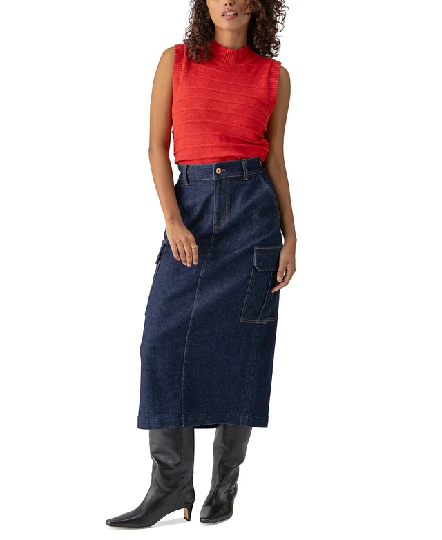 Sanctuary Women's Essential Denim Midi Cargo Skirt