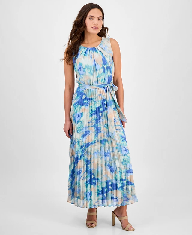 Sandra Darren Petites Pleated Tie-Waist Sleeveless Dress