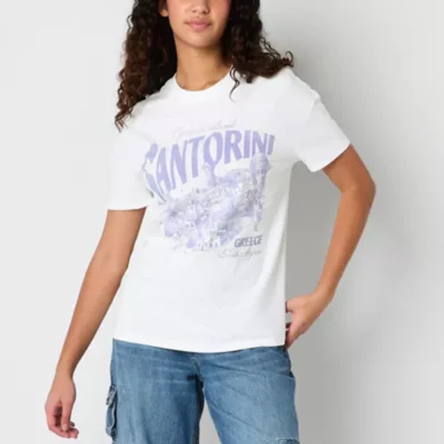 Santorini Greece Boyfriend Tee Womens Juniors Crew Neck Short Sleeve Regular Fit Graphic T-Shirt